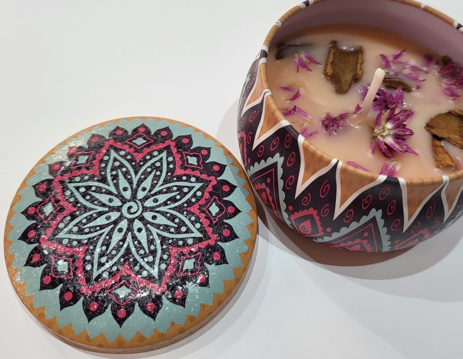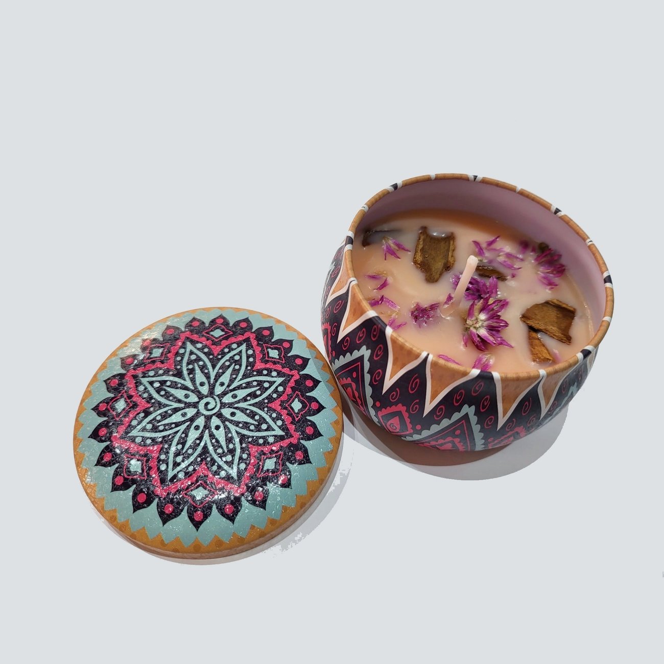 Possui o aroma clássico do Natal, é feita com cera vegetal de soja, pavio de algodão e óleos essenciais.